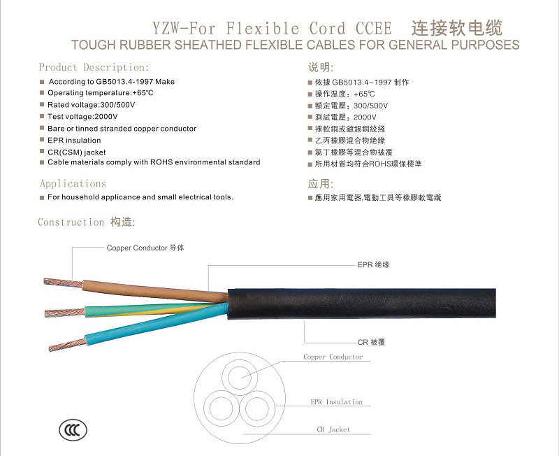 CCC认证 53 YZ 橡胶线规格如下: