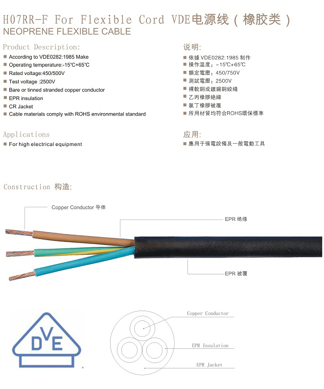 VDE认证 H07RN-F H07RR-F 橡胶线