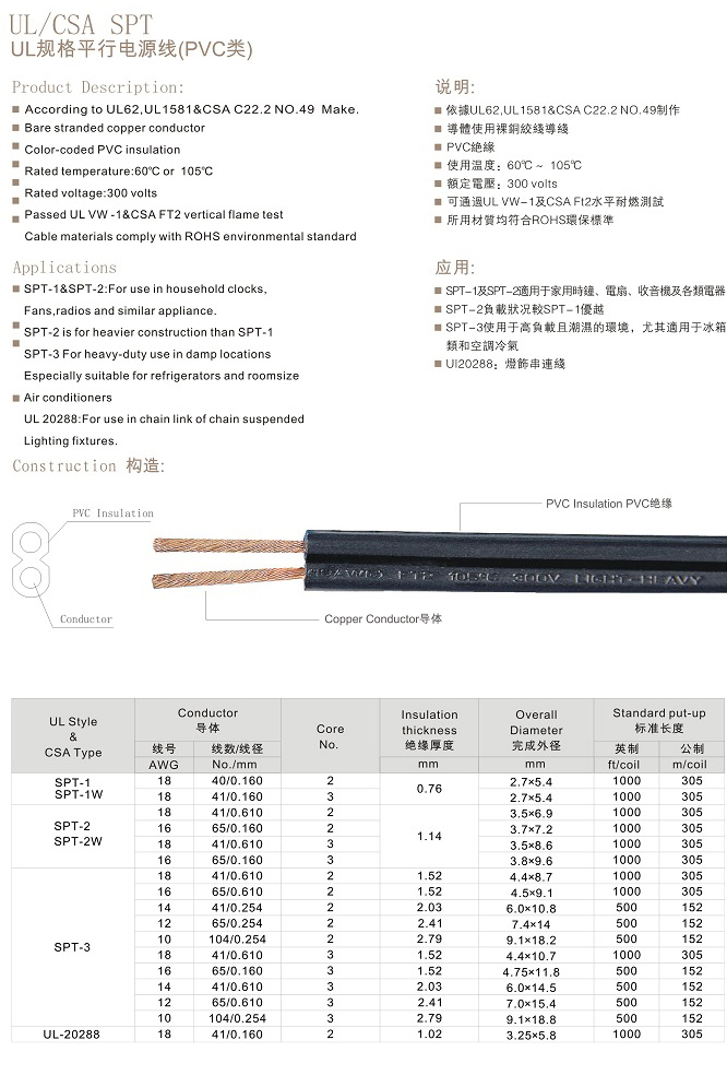 美国UL认证SPT电源线SPT-1/SPT-2…